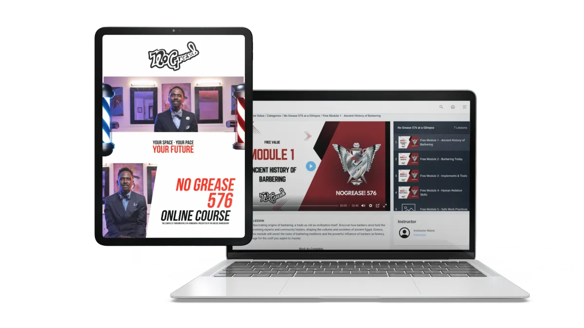 The No Grease! 576 Online Course is a North Carolina-accredited program, designed to provide comprehensive educational resources and training to prepare students for their state board exams in barbering. While the program equips students with the knowledge necessary to succeed, it is the responsibility of each subscriber to research and confirm whether the hours earned through this program are accepted by the licensing board in their state of residence. We will report all earned hours to the North Carolina State Board of Barbering. However, this does not guarantee that other state boards will recognize these hours or accept them toward licensure.